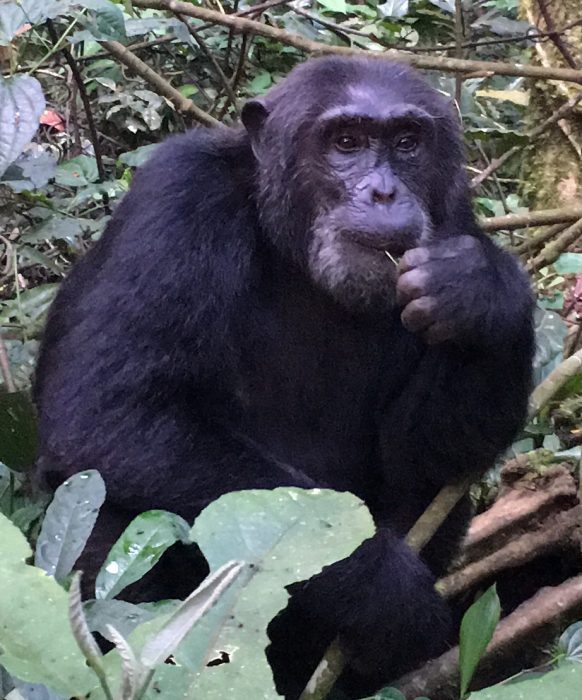 Sabah 8:00 de başlayan şempanze maceramızda, önce briefing’de şempanzeler ile insanın atalarının altı milyon yıl önce birbirinden ayrıldığını ve %96-99 DNA benzerliği ile şempanzelerin bize gorillerden daha yakın akrabamız olduğunu öğreniyoruz. Sabah erken saatlerde daha hareketli oldukları ve ağaçlardan zemine inme şanslarının daha çok olduğunu duyunca heyecanlanıyoruz. Sonuçta sadece ağaçlardan atlayışlarını izlemek ve çığlıklarını duymak yerine şempanzeleri yakından görebilmeyi arzu ediyoruz.