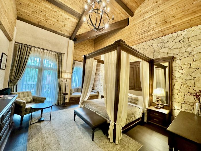 Geniş odaları son derece sofistike ve zevkli döşenmiş. Rustik tarzı ile sanki tarihi bir mekandaymışsınız hissi verse de; yan odaları görmediğiniz ve duymadığınız size özel mimarisinden, büyük ve zevkli banyolarına, kahve makinasından, özel çaylarına, yumuşacık bornozlarından nefis kozmetiklerine, kocaman yataklarından rahat yastıklarına, modern bir gezginin tüm taleplerini, ve tüm konforunu fazlasıyla karşılayacak bir deneyim sunuyor. Hatta insana kendini prenses gibi hissettiren bir ‘kraliyet’ hissi veriyor bizim kaldığımız Clairet tipi oda. (Blush, Rose ve Clairet isimli 3 farklı oda kategorisi mevcut) Ahşap dekorun ağırlıkta olduğu odalar çok sevebildiğim bir konsept olmasa da, odamızın genişliği ve camların büyüklüğü ferahlık sağlamıştı.