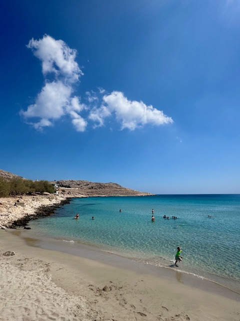 Adada uzun kalıyorsanız, ve farklı koyları keşfetmek istiyorsanız Güney’de Trahia, Gylai, Anti koylarına, doğuda Alimia adasına, ve kuzeyde Areta, Agios Georgios ve Dİo Giali plajlarına kalkan tekne turları ve deniz taksileri limanda kolaylıkla bulabilirsiniz. (Arzu ederseniz bembeyaz çakıl taşlı plajlı Areta’ya 50 dakikalık yürüyüş ile ulaşabilirsiniz.)