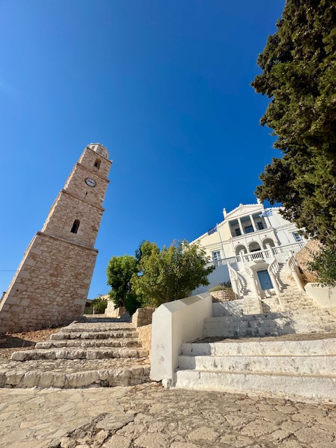 Emborio’da saat kulesi ve belediye binası İtalyan neo-klasik dönem mimarinin çok güzel birer örneği. Muhteşem krokalyaları ile büyük kilise ve çan kulesi de görülmeye değer.