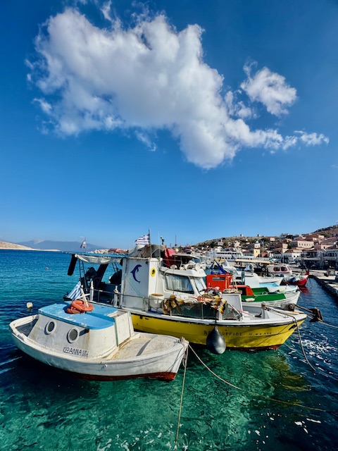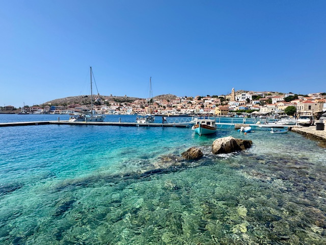 Nasıl olmasın? Kayıktan çıplak gözle bile balıkları, süngerleri görebileceğiniz bir temizlikte ve berraklıkta bir denizi var Halki’nin. imana yanaşıp tekneden indiğinizde pırıl pırıl sularına inanmıyorsunuz. Hayatımda hiç böyle temiz liman denizi görmedim. Kayalık sığlıkları ve kumsalları ile limanında bile tertemiz turkuaz bir denize ev sahipliği yapıyor.