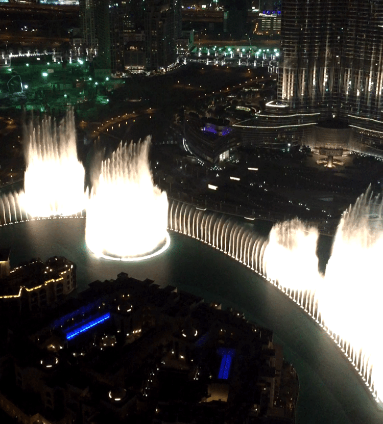 Dubai Mall’un dışında bulunan gölette her yarım saatte bir müzik eşliğinde muhteşem bir su şovu oluyor. Özellikle akşam ışıklar ve Sarah Brightman’ın muhtesem sesi eşliginde yapılan bu su şovları, tüylerinizi ürperterek ayakta alkışlanacak güzellikte. Havuzun tam karşısında bulunan 829 metre uzunluğundaki dünyanın en yüksek binası olan Burj Khalifa’nın gözünüzden kaçması biraz imkansız.