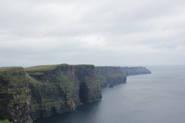 Bu lezzetli durak sonrasında hiç durmadan “Cliffs of Moher”e geliyoruz. Burası İrlanda’nın en meşhur manzarasına ev sahipliği yapıyor; 8 km boyunca, okyanusa uzanan, 200 metre yüksekliğindeki falezlerin en azından bir fotoğrafını görmüşsünüzdür diye düşünüyorum. Görmediyseniz aşağıda görebilirsiniz.