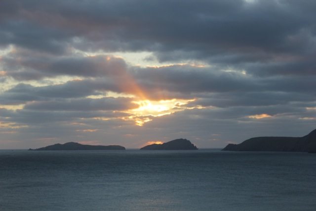 Hava kararmadan önce meşhur Dingle burnu turunu gerçekleştirebilmek için hemen yola koyuluyoruz… Hava 6-7 derece ve güneşli, oldukça soğuk olduğu söylenebilir. Dingle burnunun ucuna gittikçe batmakta olan güneş, inanılmaz bir Atlantik manzarası seriyor gözlerimizin önüne… Arabamızdan inip, iç yakan soğuğa rağmen manzaranın tadını çıkarıyoruz. Okyanus manzarası alıştığımız manzaralardan uzak; bir sonsuzluk ve yalnızlık hissi yaratıyor insanda…