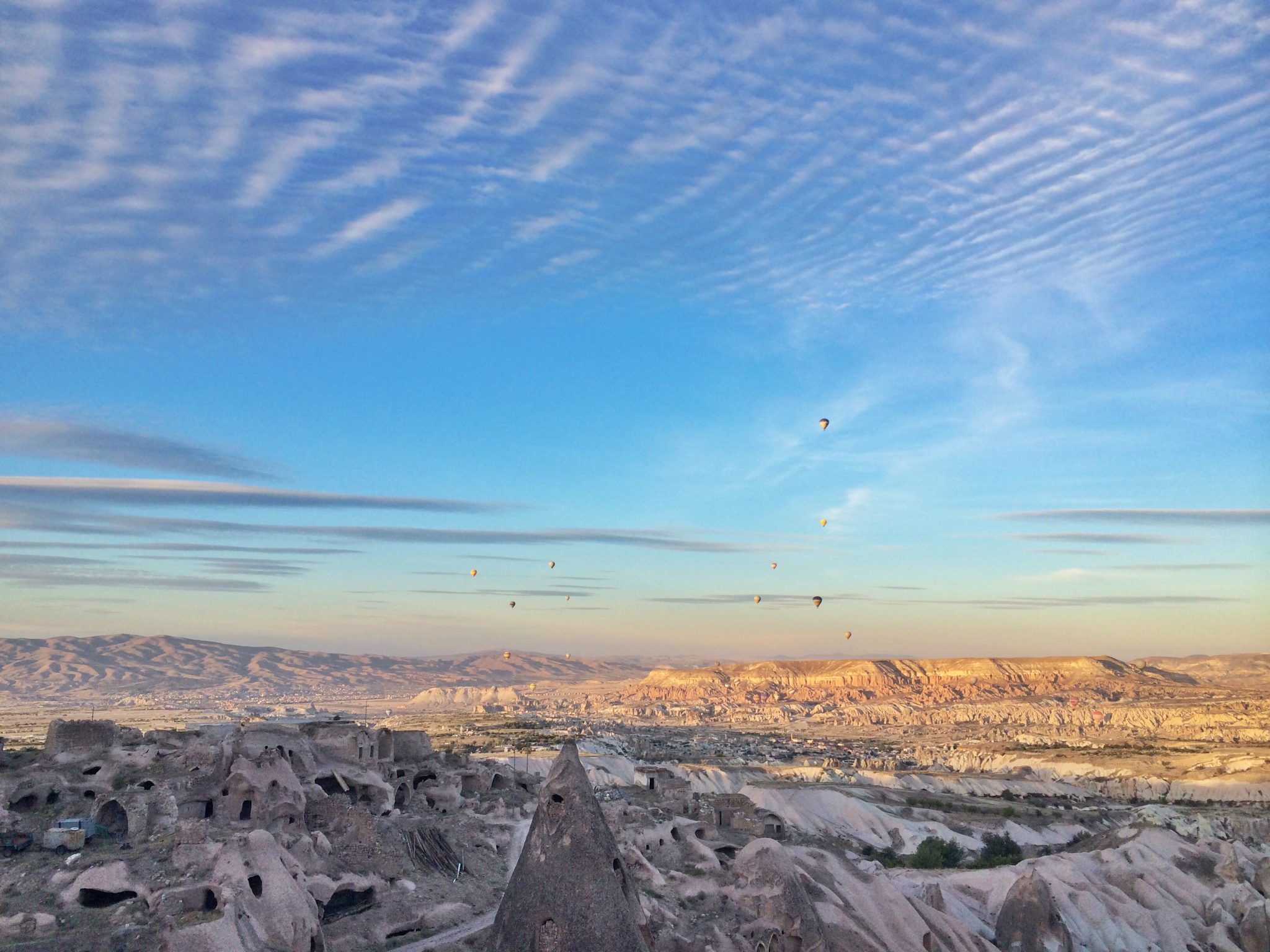 Sabahın çok erken saatlerinde daha güneş doğmadan Göreme’de bir kalabalık yaşanıyor. Fransız, Japon, İtalyan, Yeni Zelandalı, Amerikalı, Kanadalı, Türk her milletten birçok gezgin balon şirketlerinin toplanma alanında bir araya geliyor. Ve eğer hava koşulları izin verirse Göreme Vadisinin bir köşesine dağılınıyor. Gün doğarken şişiriliyor balonlar, ve alacakaranlıkta, peribacalarının arasından gökyüzüne doğru süzülmeye başlıyorsunuz. Gökte ağır ağır ilerlerken, güneşin pembe turuncu ışığının, uykudaki vadiler, kayalar, bağlar, peri bacaları üzerindeki renk oyunlarını izleyerek adeta kendinizden geçiyorsunuz. Bölgenin eşsiz güzelliğini gökyüzünden seyretmek rüya gibi bir deneyim. Eğer denk gelirseniz peri bacalarının karla kaplı olduğu kış aylarında güneşli bir günde daha geç saatte yapılan balon gezileri daha da masalsı oluyor.