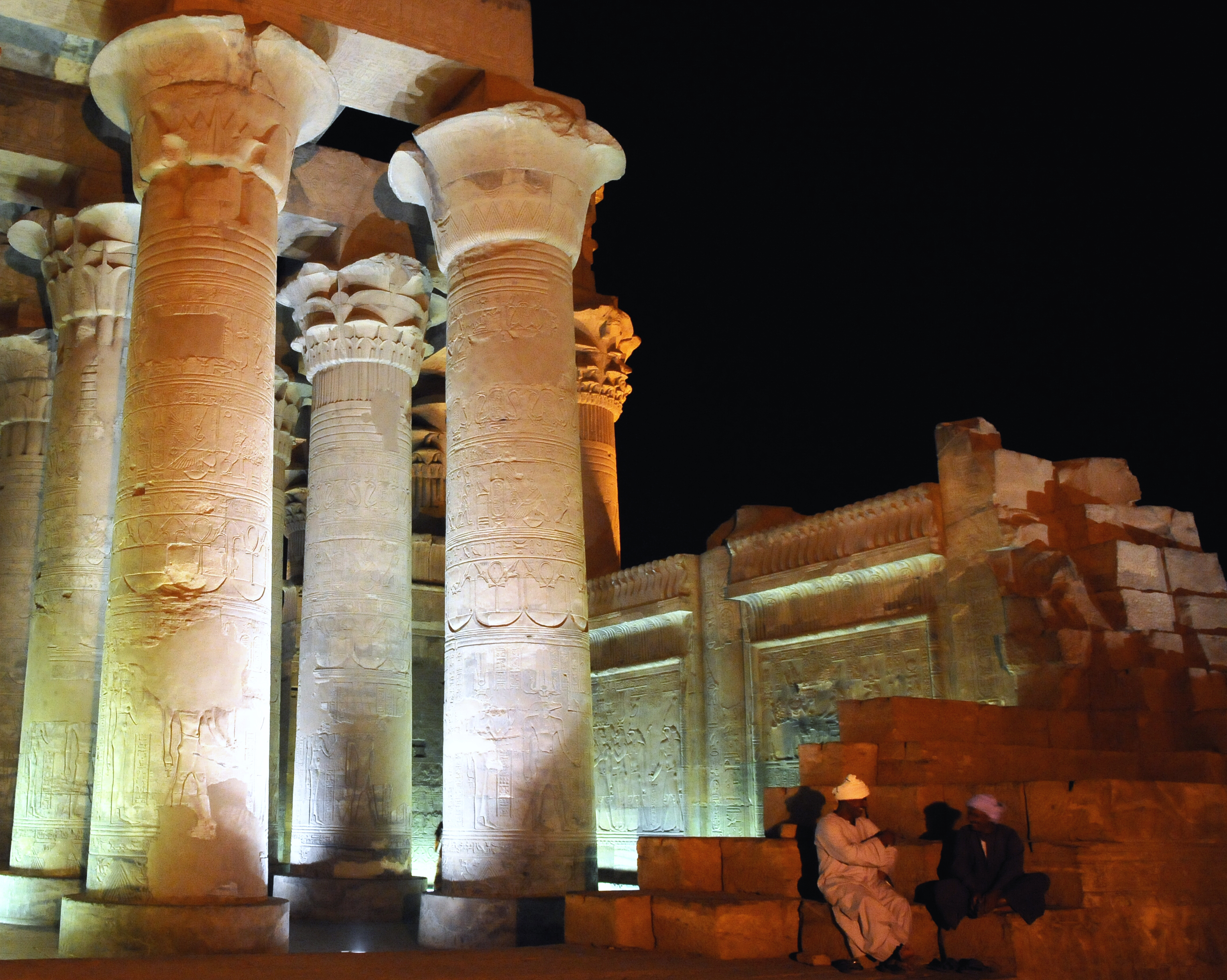 Kom Ombo Tapınağı: Nil kıyısında yer alan antik Mısır tapınağı, MÖ 2. yüzyılda Ptolemaios Hanedanı döneminde yapılmış. Tapınağın tüm mimarisi ana eksen boyunca simetrik olarak inşaa edilmiş ve de bir yanı timsah tanrı Sobek’e, öbür yanı ise şahin tanrı Horus’a adanmış. Genelde teknelerin gece uğradığı bu tapınak özel aydınlatması ile muhteşem gözüküyor.