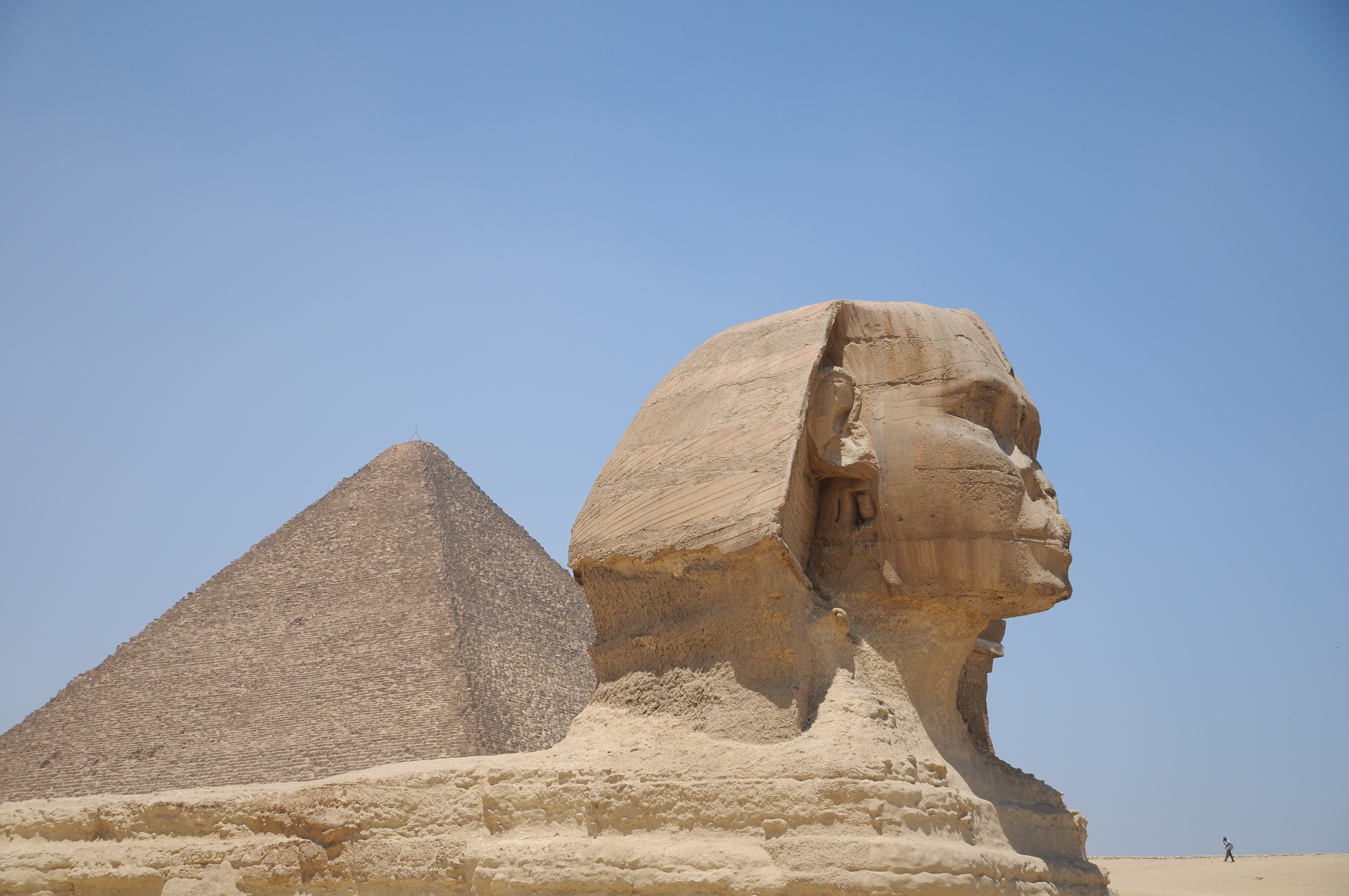 - Kahire’nin güneybatısında arabayla 30 dakika mesafedeki Giza’da dünyanın 7 harikası arasında yer alan Kahire’nin sembolleri sizi karşılıyor: Keops, Kefren, Menkor piramitleri ve de Kefren’in mezarını beklen insan başlı dev aslan heykeli Sfenks. Anısına inşaa edildikleri Firavunların isimlerini taşıyan piramitlerin her biri, yaklaşık 30 yılda, yüzbinlerce işçi tarafından 10-15 ton ağırlığında 2 milyondan fazla taşın üstüste yerleştirilmesiyle tamamlanmış. Piramitlerin nasıl yapıldığının gizemi hala çözülebilmiş değil.