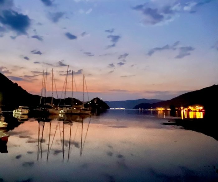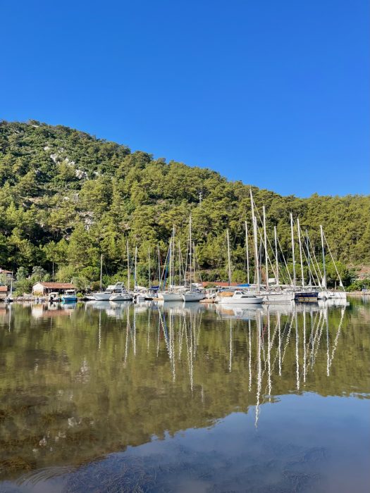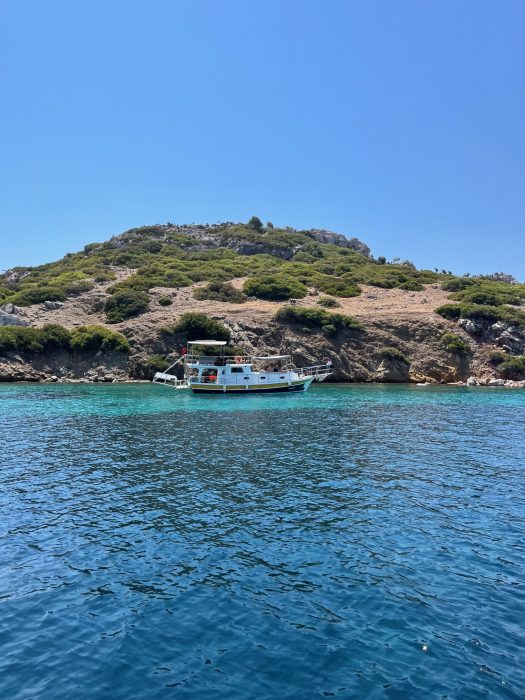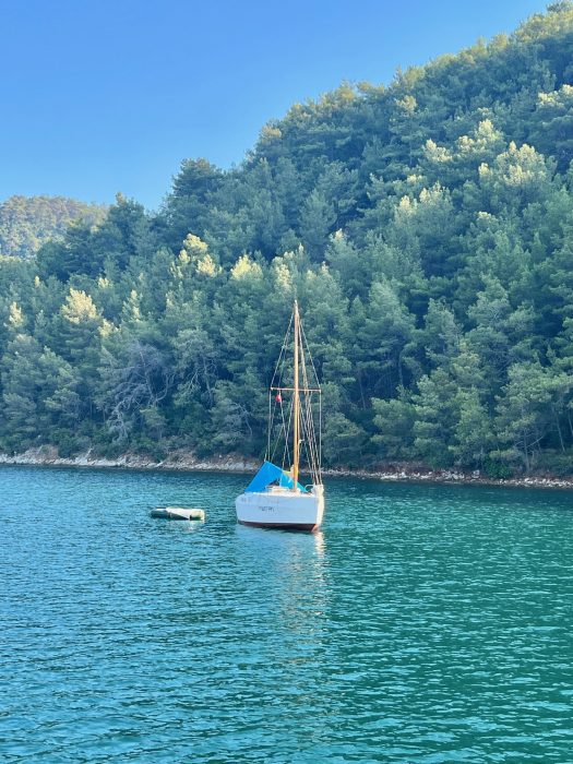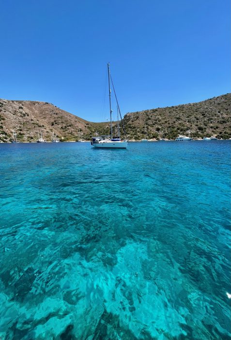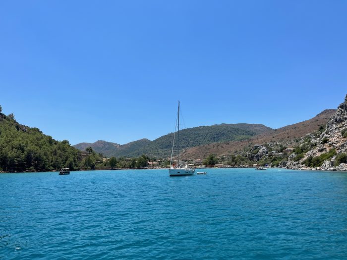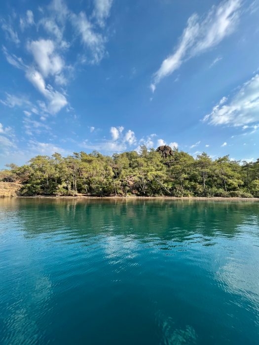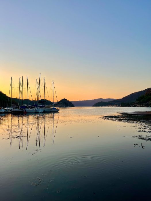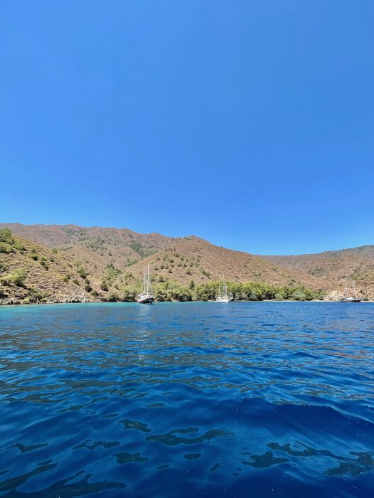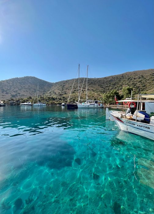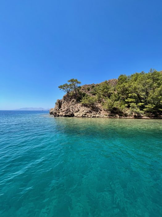 2022 yazında 8.5 metrelik küçük motor botumuz ile denizden Hisarönü Körfezi ve Bozburun Yarımadası keşifleri yapma şansımız oluyor. 2020 – 2021 yazlarını Çeşme Ovacık’taki bağlarımızı canladırma ve bağcılığı öğrenmekle geçirmiştik ve hiç yaz tatili yapmamıştık. 2022’de asmaların son ilaçlarını verip, artık  üzümlerin kendi olgunlaşma süreçlerini bekleme evresine geçtiğimiz Temmuz ortasından bağ bozumuna kadar, biz de kendimize bir dinlenme molası verdik. Teknemizi Orhaniye’ye indirip, denizi,maviyi, yeşili yaşamak o kadar iyi geldi ki.