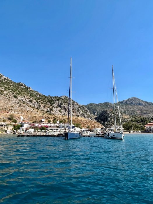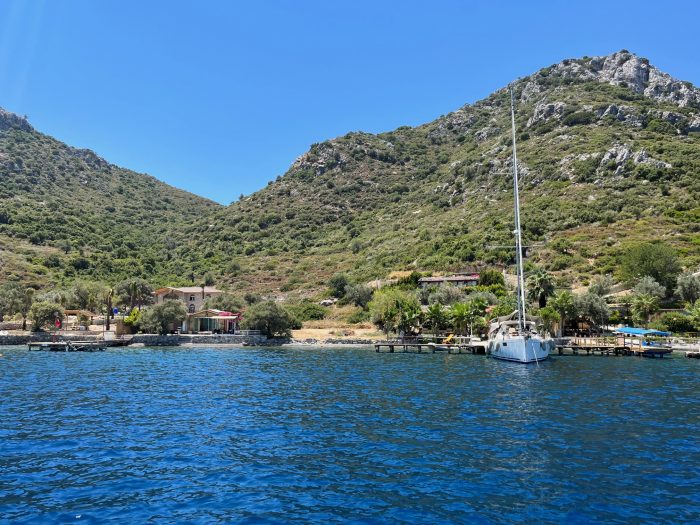 Kocabahçe Sailors Paradise: En sevdiğimiz restoran olan Dirsekbükü Restoranın sahibi Levent Şengül’ün babası Mehmet Bey’in yeri Kocabahçe Restoran. Biz daha iskeleyi boş bulamadığımız için yemek yeme şansını bulamadık. Restoranda yemek koşulu ile iskeleye bağlanabiliyorsunuz. Elektrik ve su ikmali imkanı yok. Duş ve restoran hizmeti var. Yakında tiny house’lar ile konaklama imkanı sunmaya başlayacak Kocabahçe. Sadece tekne ile ulaşabileceğiniz bu aile işletmesini genel olarak çok samimi, sakin, huzur dolu ve mütevazi buluyor gidenler. Balıkları ve mezeleri için de fiyat kalite oranı iyi diyorlar.