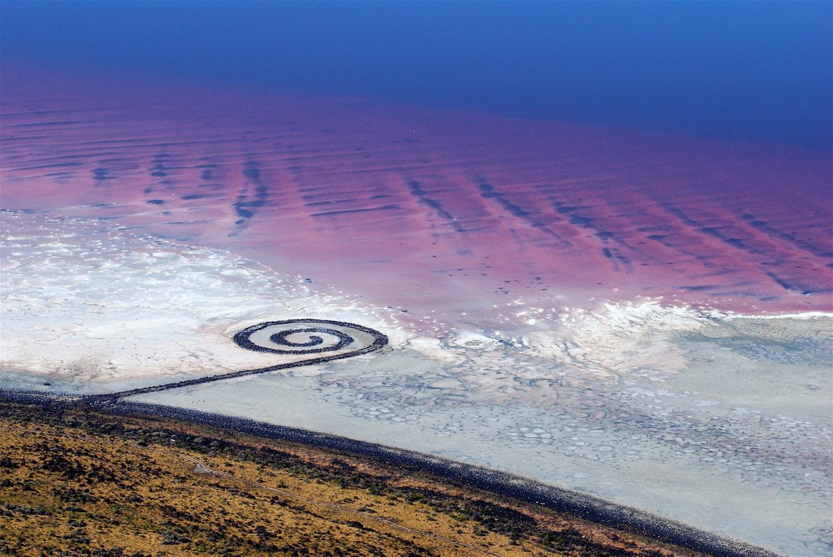 ‘Land Art’ yani ‘Arazi Sanatı’ denince, Utah’ın Great Salt Lake bölgesinde yer alan Robert Smithson imzalı dev basalt spiral eseri kesinlikle ilk akla gelen ve en önemli örnek. Robert Smithson ve iki asistanının uzun bir sürede inşaa ettiği spiral şeklindeki 458 metrelik kaya enstelasyonu, 40 yıldan uzun bir süredir doğa ile içiçe yaşamaya devam ediyor. Şimdi tuzlar ile kaplı olan bu basalt yapı, uzaydan görünebilecek büyüklükte.