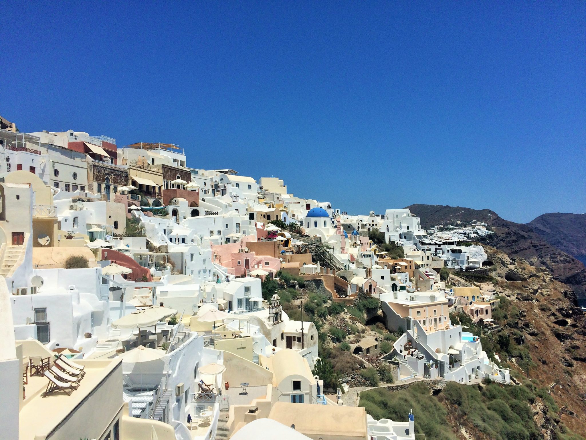 Gündüzleri Perissa ve Kamari plajlarında eğlenmek üzere gelen gençler, geceleri Fira’nın barlarını mesken tutuyor. Bu sebeple Fira ucuz ve eğlence odaklı kalmış, geceleri uyumak pek mümkün değil.  Oia ise daha sessiz, seçkin ve zarif. Oia belediyesi mimariyi ve lokal yaşamı korumaya özen göstermiş, bar sayısını mimimumda tutarak, yüksek sesli müziği yasaklamış. Dünyanın en muhteşem manzaralı, en romantik ve şık otelleri Oia’da yer alıyor. Beyaz mermer taşları ile ana caddesi Marmara ve ona açılan daracık sokaklarındaki rafine restoran ve kafeleri, ufacık seramik atölyeleri, takı, kıyafet butikleri ve kitapçıları ile Oia hala otantik havasını koruyor.