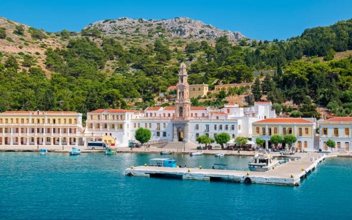 - Adanın doğusunda yer alan ve Panormitis manastırı ile ünlenmiş plaj, şezlong, şemsiyeler ve tavernalar ile gelişmiş bir sahil. Rodos’tan günü birlik manastır ziyaretçi tekneleri geldiği için kalabalık olabiliyor. Ancak tekne ile giderseniz sağ ve sol tarafındaki turkuaz berrak sularda huzurla deniz keyfi yapabilirsiniz.