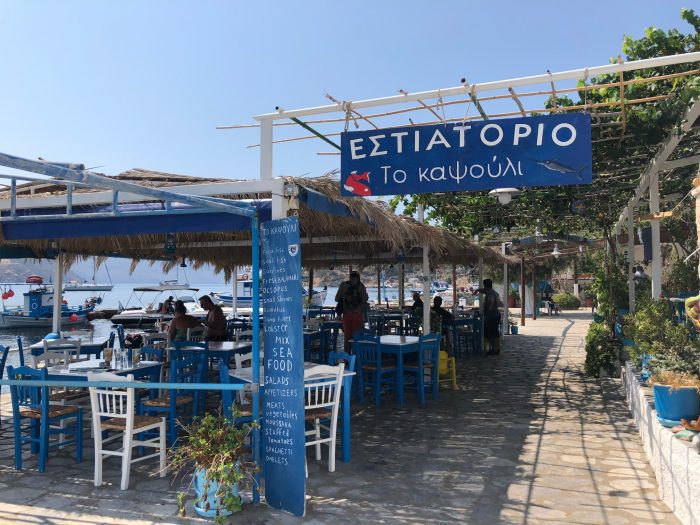 Limandaki tavernaların hepsi çok şirin, hepsi karşı kıyıya göre çok daha rahat ve salaş alternatifler. Bizim favorimiz Kapsouli oldu. Simi karides, ızgara ahtapot ve mermizelli salatası gerçekten çok güzeldi.