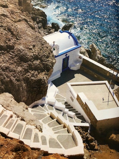 Güneşi batırmak için ise batıya doğru yürüyüp, bir kayacığın üzerine inşaa edilmiş Aghios Georgios şapeline inin. Dik merdivenler sizi bekliyor, ancak büyülü bir gün batımı manzarası için değiyor.
