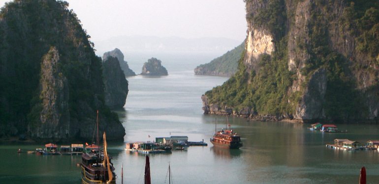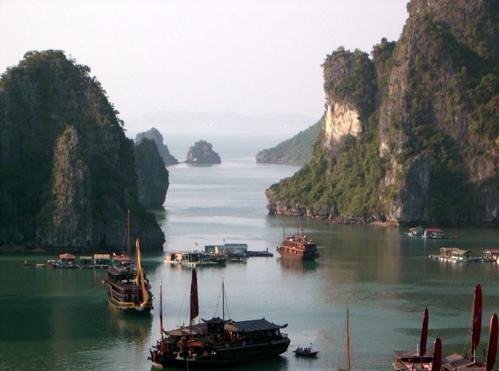 UNESCO Dünya Mirasları arasında yer alan Halong Bay Vietnam’ın en büyüleyici duraklarından birisi. Dümdüz ve sakin bir deninzin ortasından yükselen yemyeşil adacıklar ve kayalar esrarengiz bir doğa harikasında olduğunuz hissini yaratıyor. Yaklaşık 1960 kireçtaşı adacık ve kaya arasından salına salına ilerlerken zaman ve mekan kavramını yitiriyorsunuz resmen.